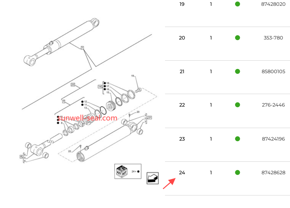 New.Holland B95CTC, LB75.B, B110B, B100B, B100BLR, LB90.B, B115B, B95C, B90B, B95BTC, B95B, B95BLR, LB110.B, B110C, LB95, LB90, LB115.B, LB115.B 4WS, LB110, LB115, B110, B95CLR, LB75, B110 TIER 3, B115, B115 LIFT CYLINDER SEAL KIT