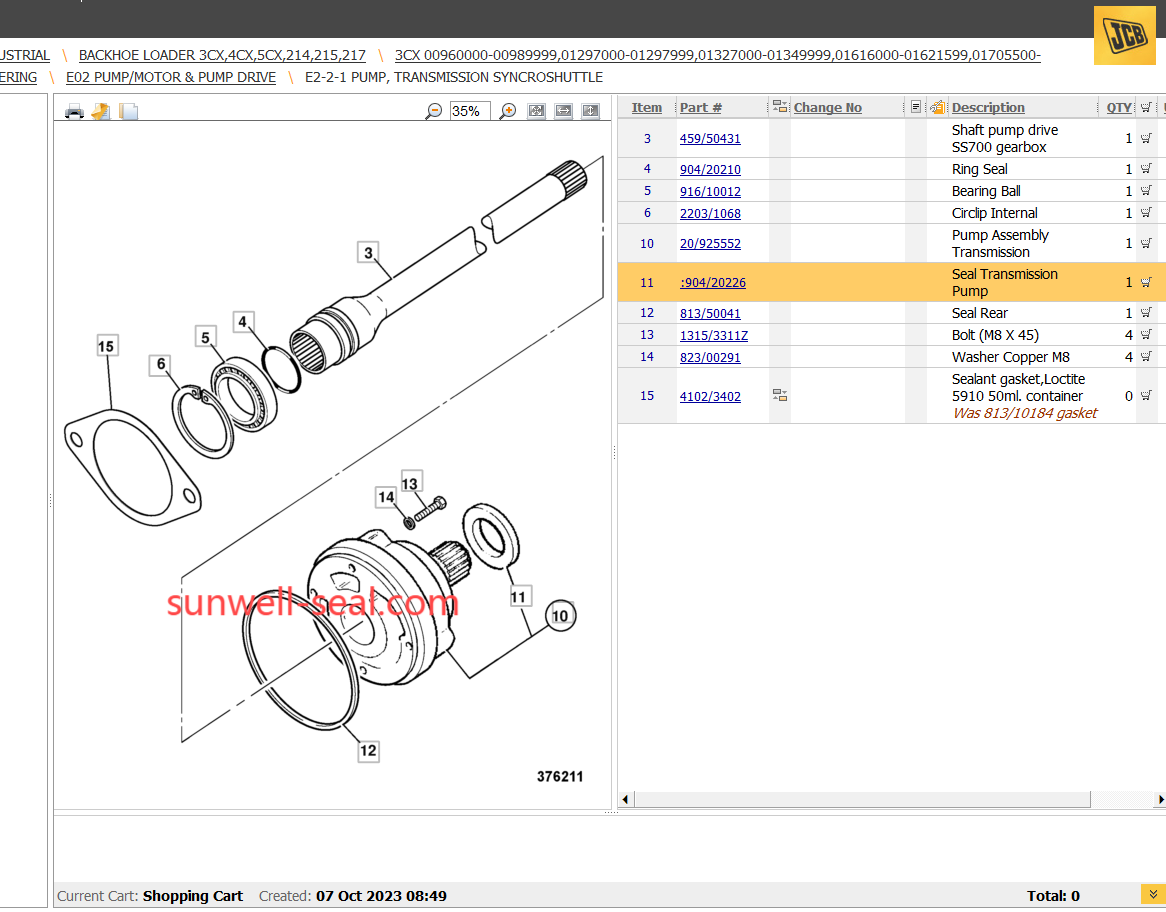 JCB 903/21071 903/21061 903/21024 991/10127 903/20222 903/20233 903/20231