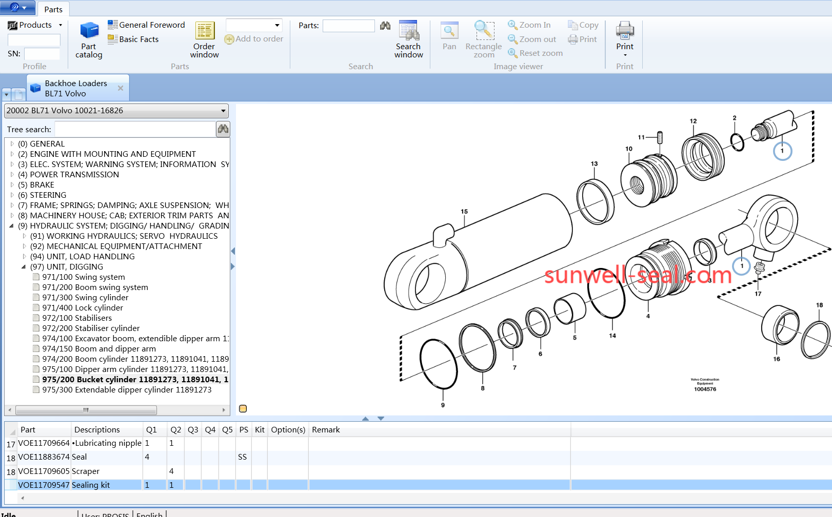 VOLVO BL70 BL71 BUCKET CYLINDER SEAL KIT